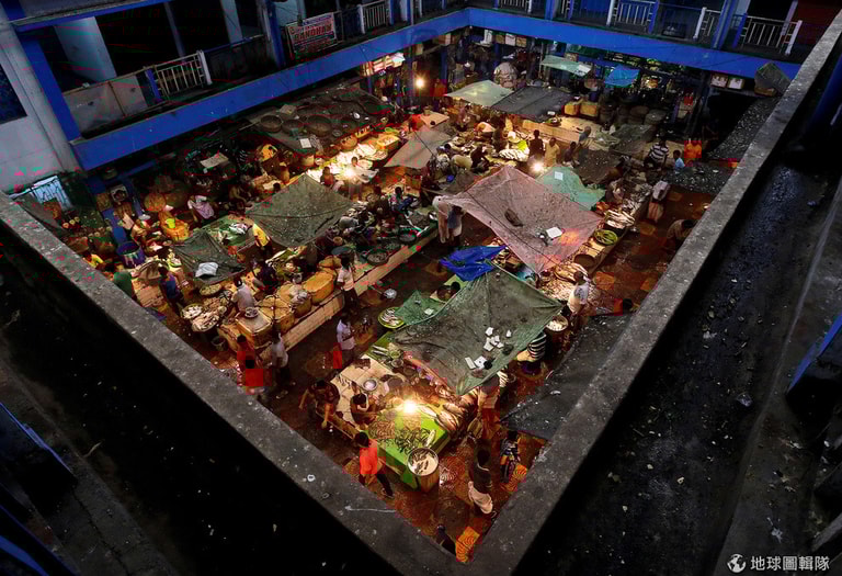 在加爾各答(Kolkata)的魚市場裡,小販正忙著兜售眼前的商品。