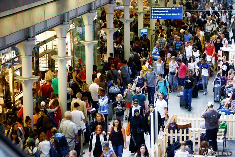 在歐洲之星於英國的終點站聖潘克拉斯站(St Pancras),大量的乘客聚集在車站裡,等待著進一步指示。