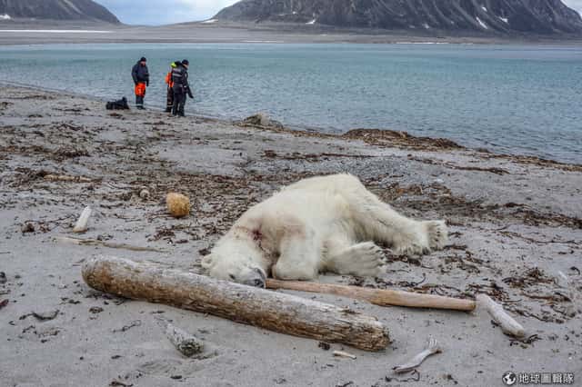 「幾乎每年在斯瓦巴島上都會有一隻北極熊因為和人類衝突被殺,或是人類為了保護住處的安全而射殺北極熊。」