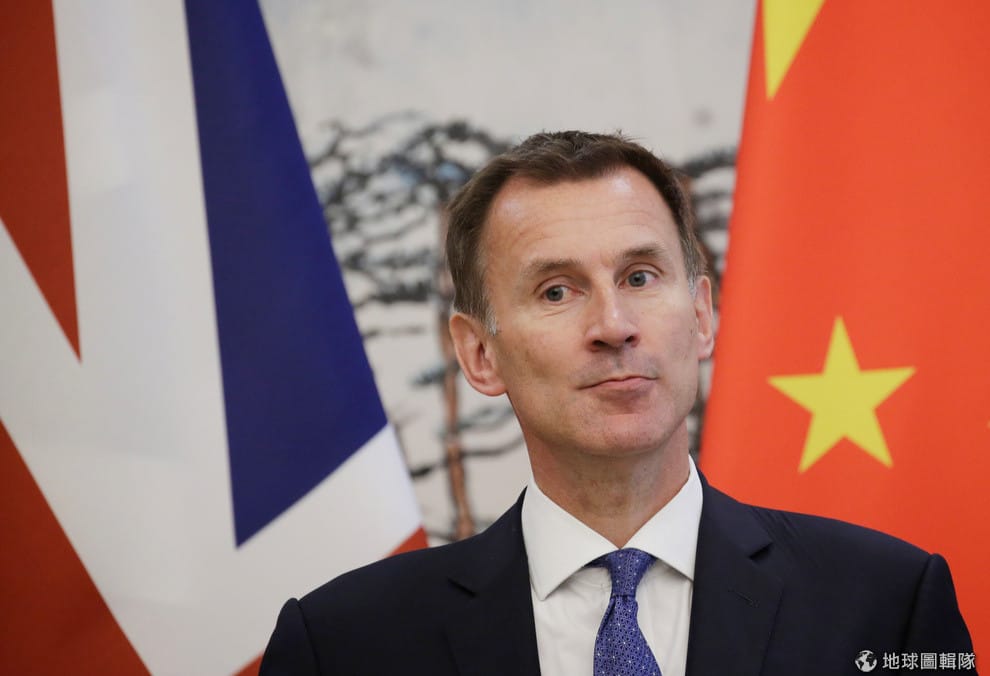 圖為英國外交大臣杭特,他目前正在中國出訪,而在 30號的中英會議上,他的失言引起了國際矚目。