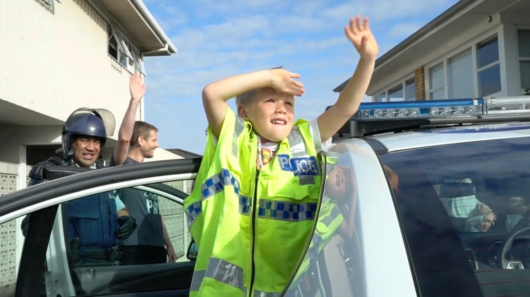 03 Auckland police rock up to Zachary's fifth birthday party after he called 111 and invited them