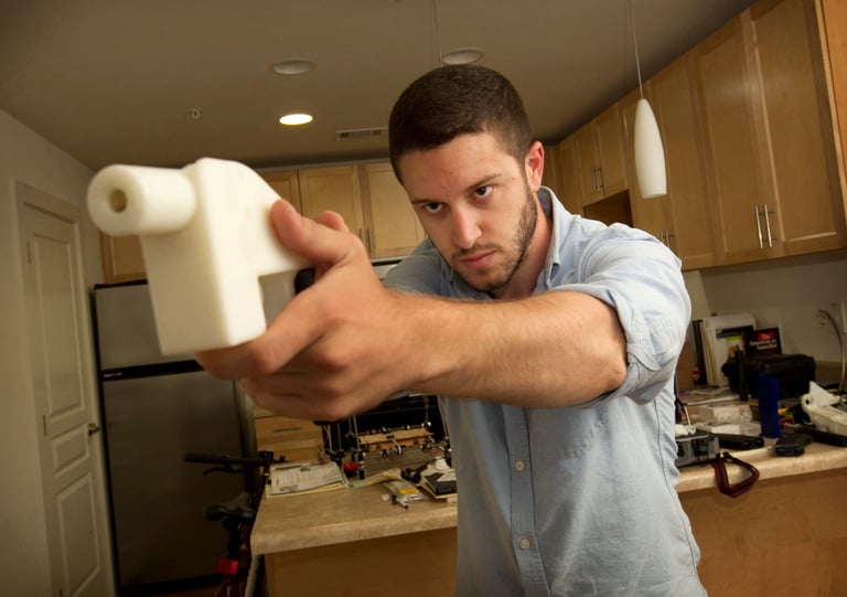 2013年,NPO分散式防禦組織(Defense Distributed)創辦人威爾森(Cody Wilson)在網路上分享了他的 3D列印手槍「解放者」(The Liberator)設計圖──只要家裡有一台 3D列印機,就能用ABS樹脂印出「解放者」的外型,再裝上一塊金屬和撞針之後,這把「解放者」就是一支 100%可以發射子彈的手槍。
