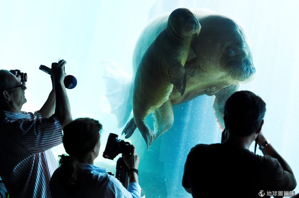 在德國漢堡的哈根貝克動物園(Hagenbeck Zoo),剛出生的小海象和牠的媽媽首次一同公開亮相。
