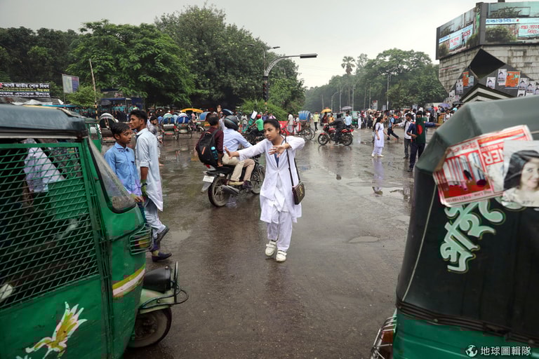在接下來幾天,可以看到首都達卡的街頭出現學生們在十字路口、街道上設置檢查站,要求行經的公車、卡車等車輛停下來出示駕照,同時他們也會檢查這輛車的行照是否有過期——就算對方是政府官員的座車、警車也不例外。如果這些駕駛未能出示有效證照,或是出現違反交通規範的情況,他們就會通報警方將之逮捕。