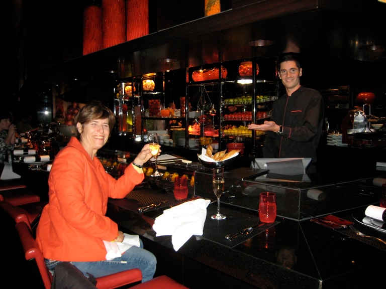 這一次,他受到西班牙小酒館和日本壽司吧的啟發,想出了工作坊(ateliers)的形式,讓客人可以直接坐在圍繞著廚房的吧台用餐,創造客人與廚師間的互動。侯布雄說:「我在尋找一種讓客人和廚師間產生火花的配方。」