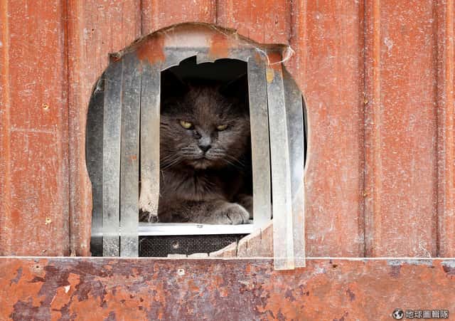 在東部謝夫爾市(Chievres)的動物養老院,一隻年長的歐洲短毛貓瞪著鏡頭,和牠一起住在這裡的有年紀很大的山羊、老狗和豬。