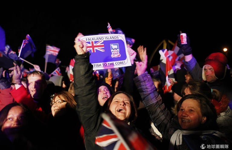 福克蘭居民得知 2013年主權歸屬公投結果之後,歡欣鼓舞。