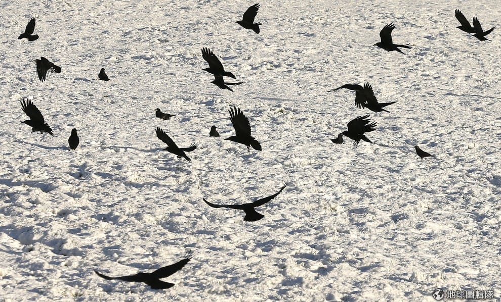 現在這些烏鴉員工每周上班 4天,值勤期間還會有一名訓練員負責觀察附近遊客的表現。圖為 2015年1月,愛爾蘭時值暴風雪,烏鴉們在積滿厚雪的銀白世界翱翔。