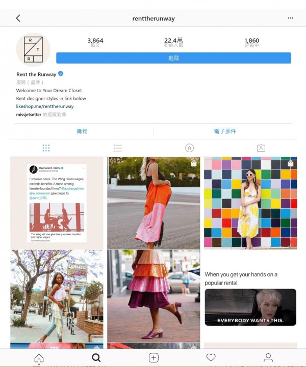 但這也不全然是一種歪風,甚至衍伸出了一股新商機,像是2009年成立的「Rent the Runway」,就標榜自己是「雲端衣櫥」,主打用戶只要每個月支付固定費用,就能租任何喜歡的衣服,目前用戶已經超過900萬,能充分滿足用戶想穿新衣拍照的慾望,Rent the Runway今年還獲得阿里巴巴創辦人馬雲,投資2000萬美元。