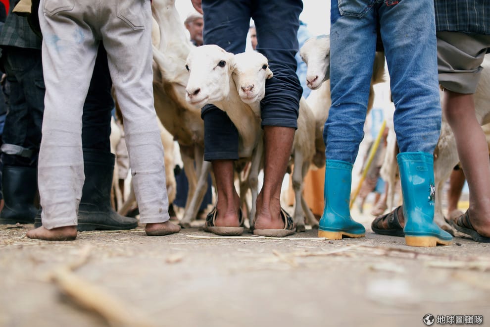 面對宰牲節(Eid al-Adha)即將來臨,在葉門的牲畜市場,顧客正在跟小販就畫面中的羊隻談個好價格。