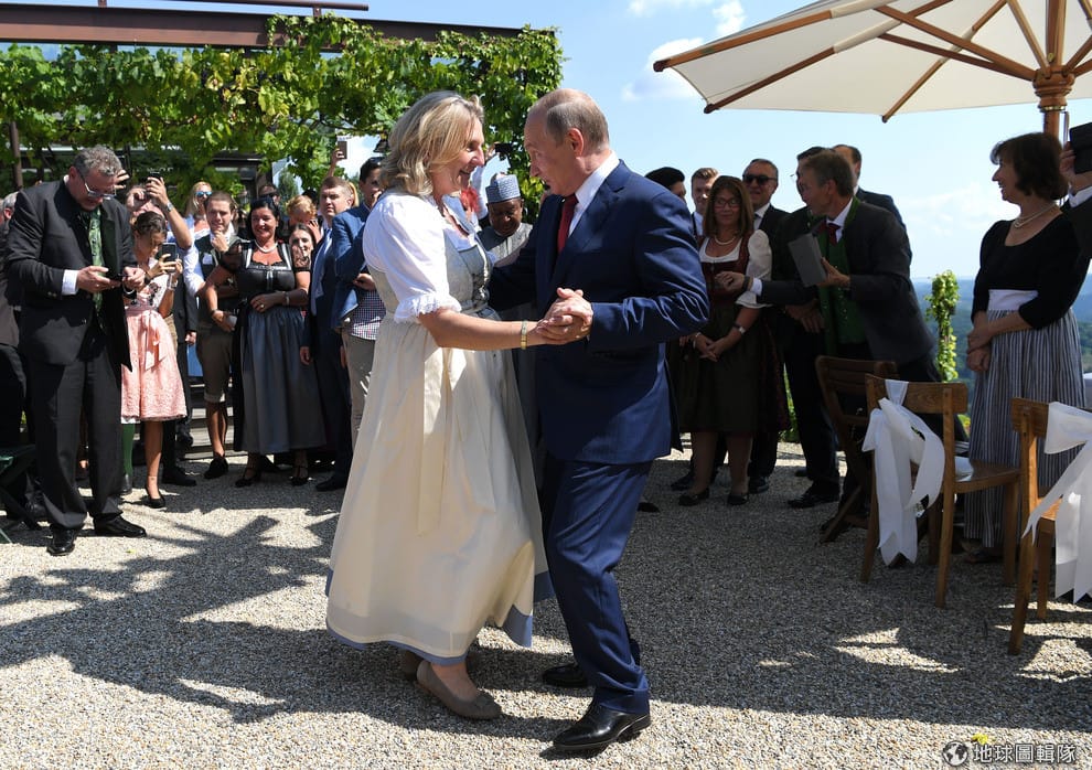 在俄國總統普亭(Vladimir Putin)前往拜訪德國總理梅克爾(Angela Merkel)途中,普亭先行來到奧地利,參加奧地利外交部長克奈斯爾(Karin Kneissl)的婚禮。在婚禮中間,普亭和身為新娘的克奈斯爾共舞的畫面也引起了話題。事後,普亭表示這只是一段私下訪問的行程。