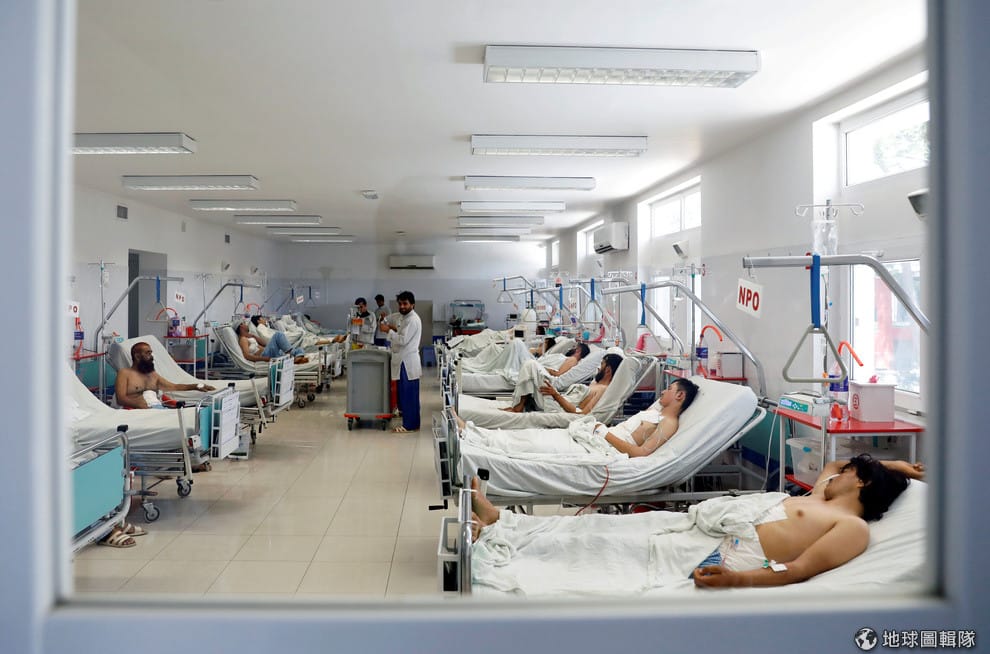 在首都喀布爾(Kabul),受到最近恐怖攻擊波及的人們正在醫院接受治療。