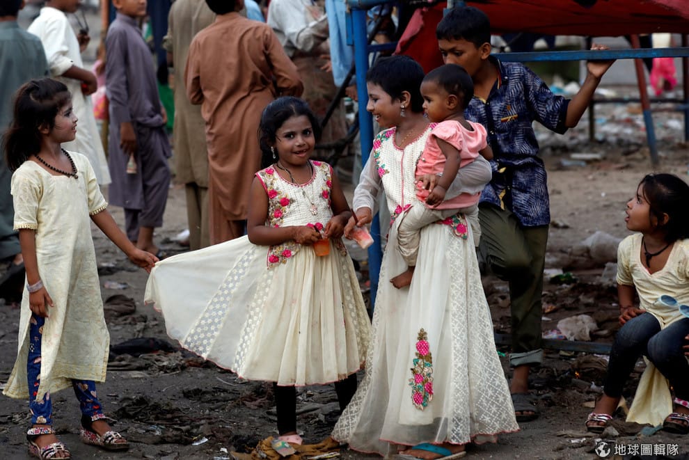 在伊斯蘭教重要節日宰牲節(Eid al-Adha,又稱忠孝節)的最後一天,一對姊妹穿起新洋裝,在遊樂場裡開心地玩耍。