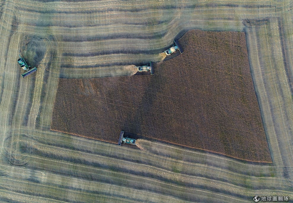 在克拉斯諾亞爾斯克(Krasnoyarsk)某處的私人農場,人們正忙著收成大麥,並意外在空拍圖中構成一幅獨特的景致。