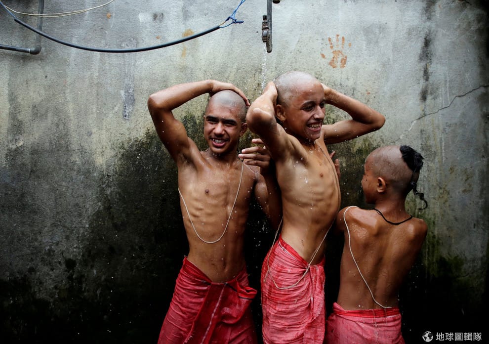 年輕的印度教信徒聚集在一塊洗著聖浴(Holy Bath),一同慶祝著兄妹節(Janai Purnima,也稱聖線節)的來臨。這些信徒會在以聖浴潔淨身心的同時,替自己換上新的聖線並祈求庇佑。