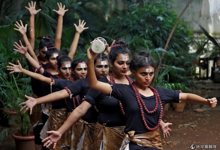 學生們打扮成濕婆神(Shiva)的模樣,在學校的宗教活動上進行表演。