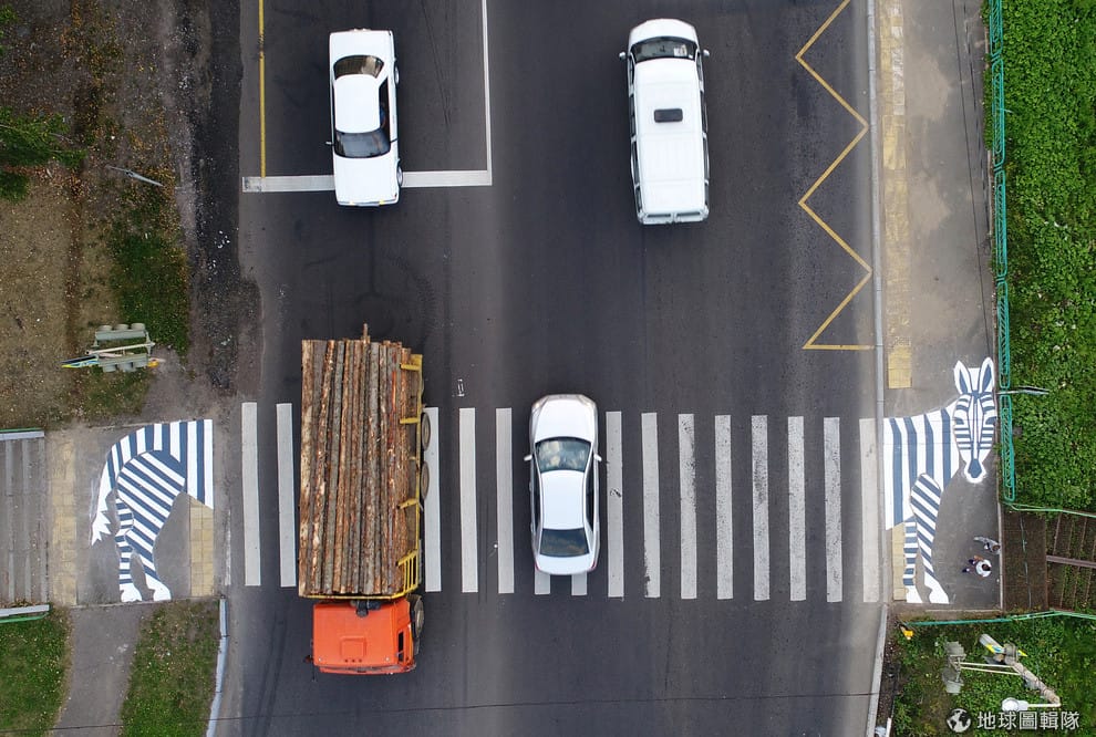 在城市克拉斯諾亞爾斯克(Krasnoyarsk)郊外,人們替斑馬線添增了斑馬的頭和尾巴,讓日常的馬路多了些趣味。