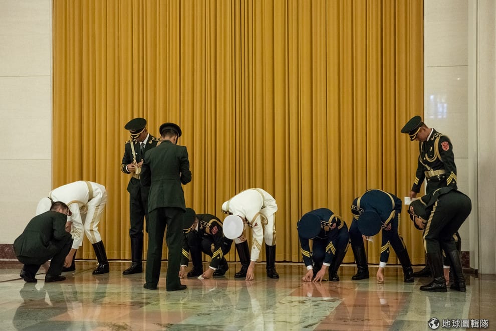 面對象牙總統瓦塔拉(Alassane Ouattara)即將來訪,中國人民解放軍的儀仗隊正忙著把人民大會堂布置完畢。