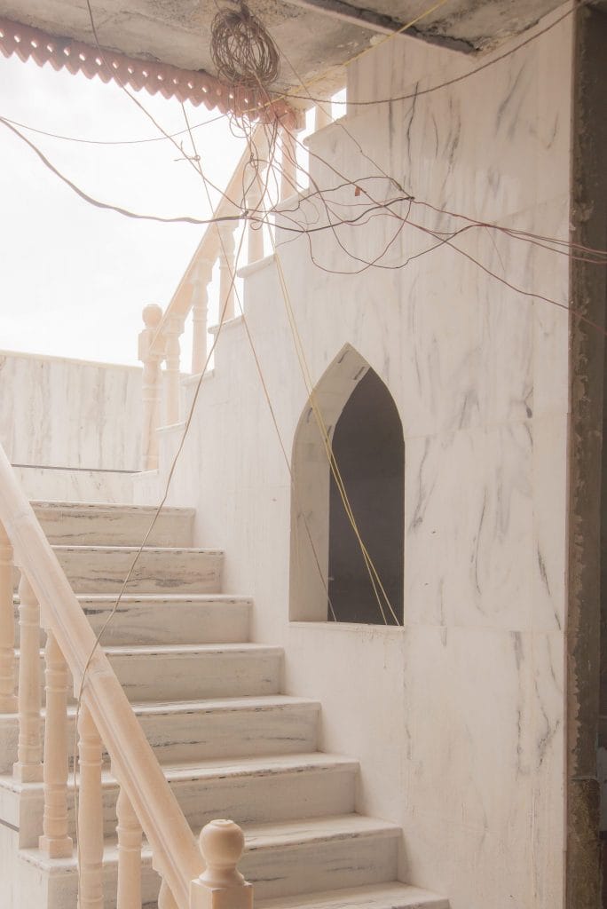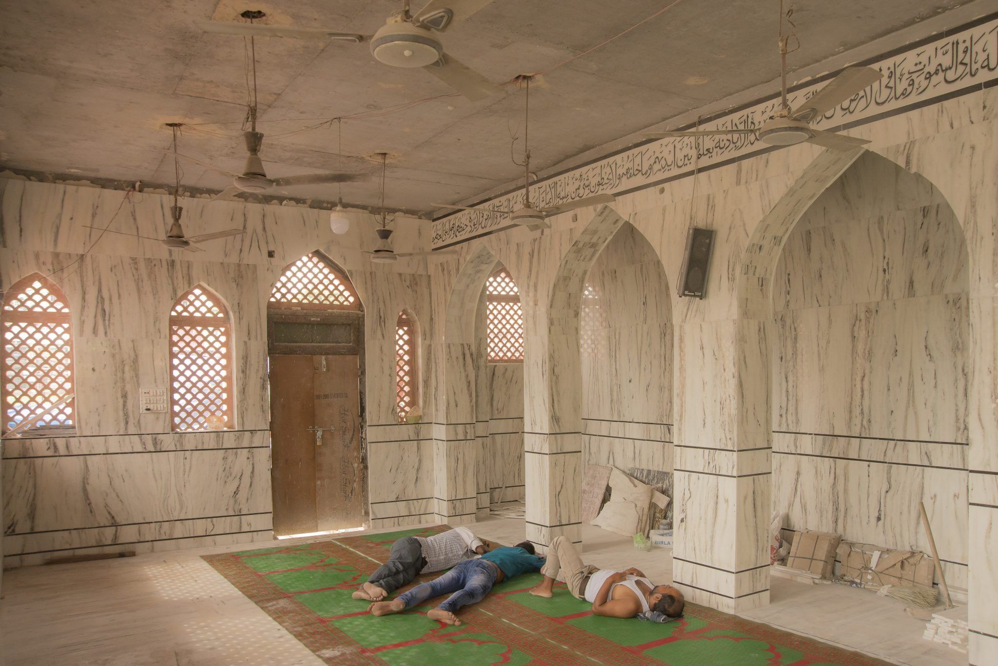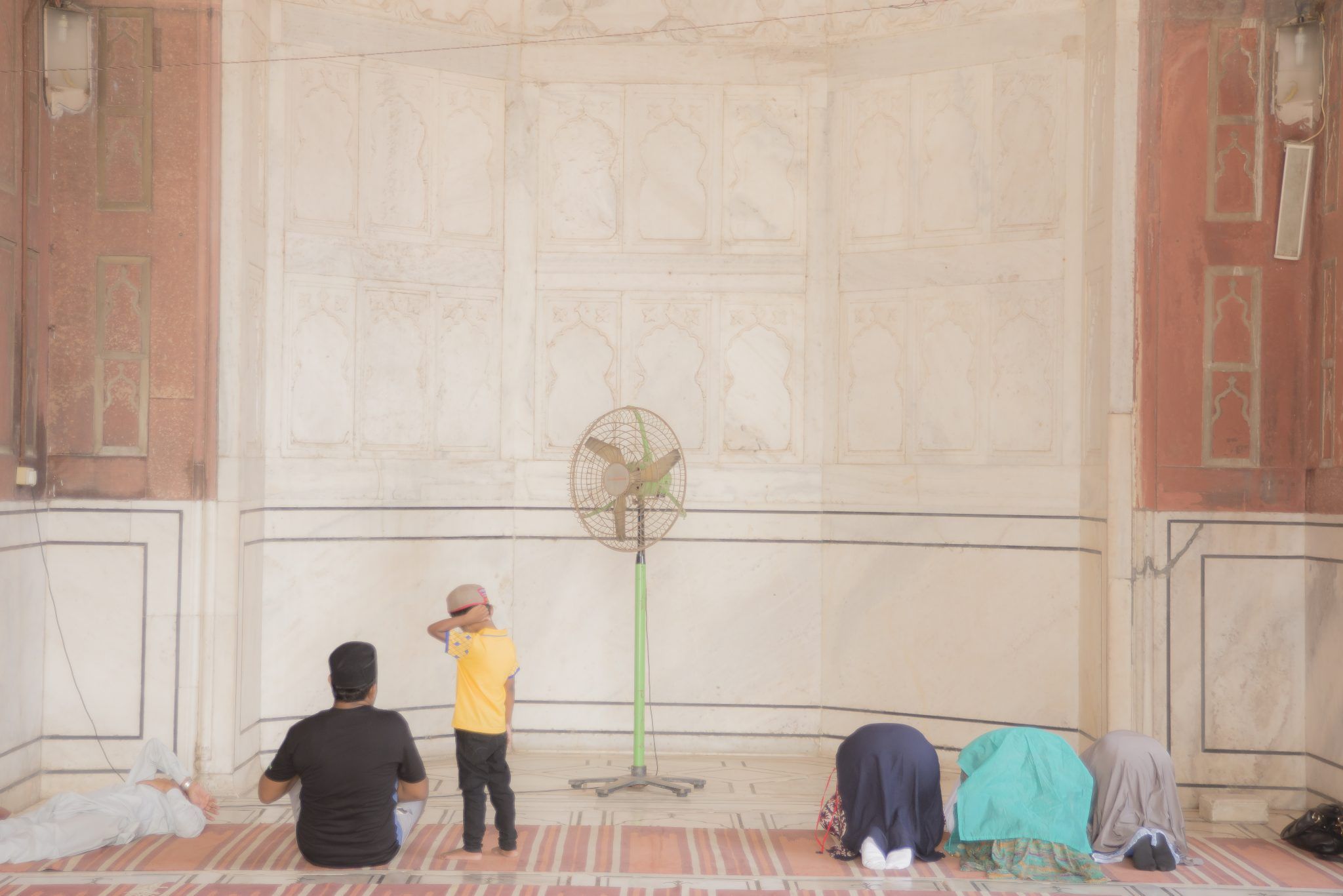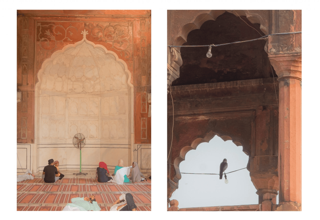 網友謝振允在高處的清真寺,蒙兀兒式拱門與內部廣場成了集風的場所,老鷹群在天空盤旋,主殿簷廊與砂岩石柱下的大理石平台上是最陰涼的所在,我們在那待了許久,一些晚來的信徒正在前補做禮拜,其餘早到的信徒或坐或躺。一些異教觀光客拿著手機四處拍照,衛塔上聚集著連線記者和架著腳架的攝影發燒友。