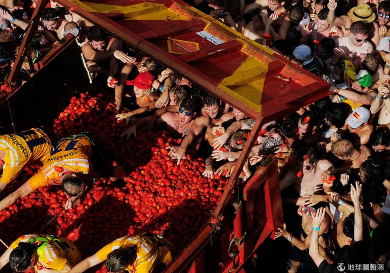 台灣每年農曆七月的忙著搶孤活動,同時間西班牙地區也忙著搶火腿丟番茄!一年一度的蕃茄節(Tomatina Festival)在西班牙瓦倫西亞的布尼奧爾鎮(Bunol)舉行,活動吸引上萬遊客加入,這個傳統活動每年約莫消耗120噸以上的番茄。