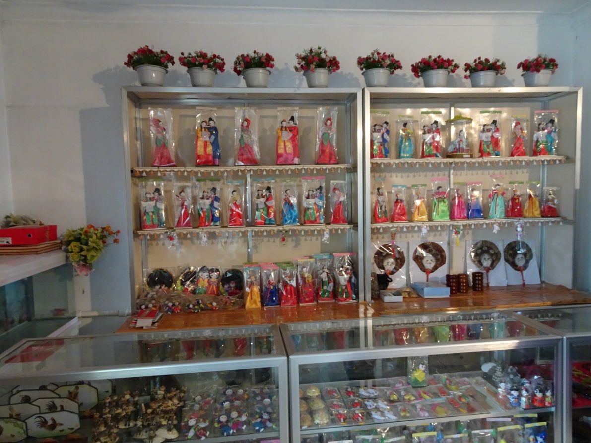 網友高紹沖在北韓的紀念品店內,朝鮮人偶和扇子是最常見的紀念品之一。