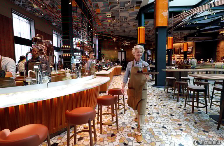 走進義大利米蘭的星巴克高檔烘焙咖啡館,映入眼簾的是佔地 2,300平方公尺的寬闊空間,腳下鋪著大理石地板,店內直接向客人展示咖啡烘焙的技術,整個空間不只是一家咖啡館那麼簡單,因為除了各式各樣的咖啡,星巴克還提供了雞尾酒、窯烤披薩、麵包以及冰淇淋。