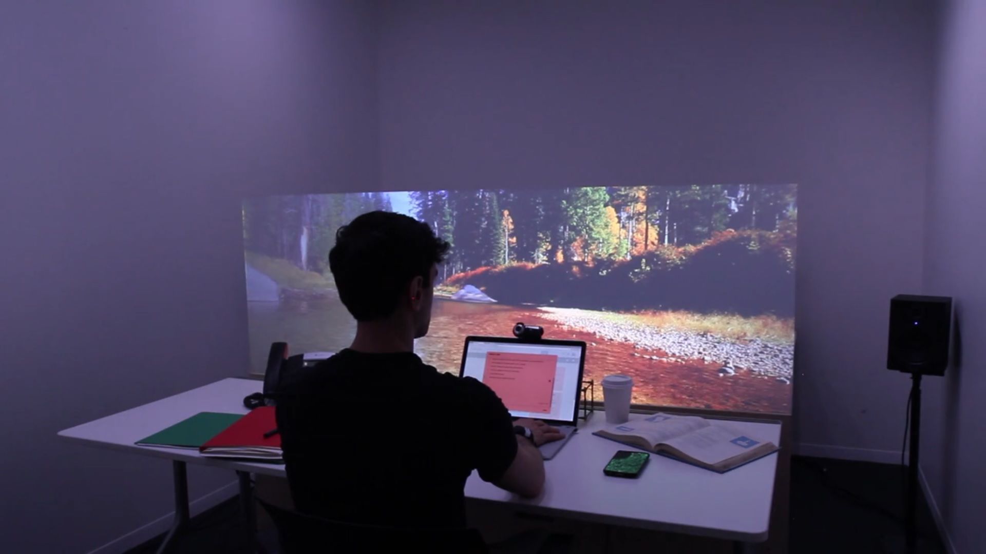 當發現使用者壓力大時,MIT打造的智慧型辦公室會在使用者的面前投影出大自然的景色,再搭配潺潺流水聲幫使用者紓壓。