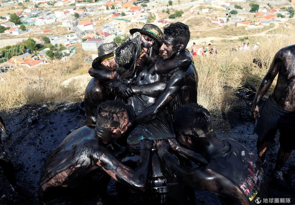 在位於南部的巴薩鎮(Baza),準備參加「卡斯卡莫拉斯節」(Cascamorras)的民眾互相拿黑油把對方抹得全身黑。