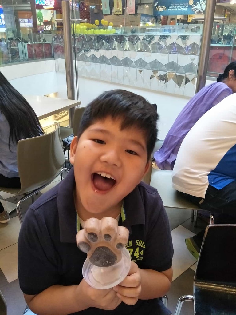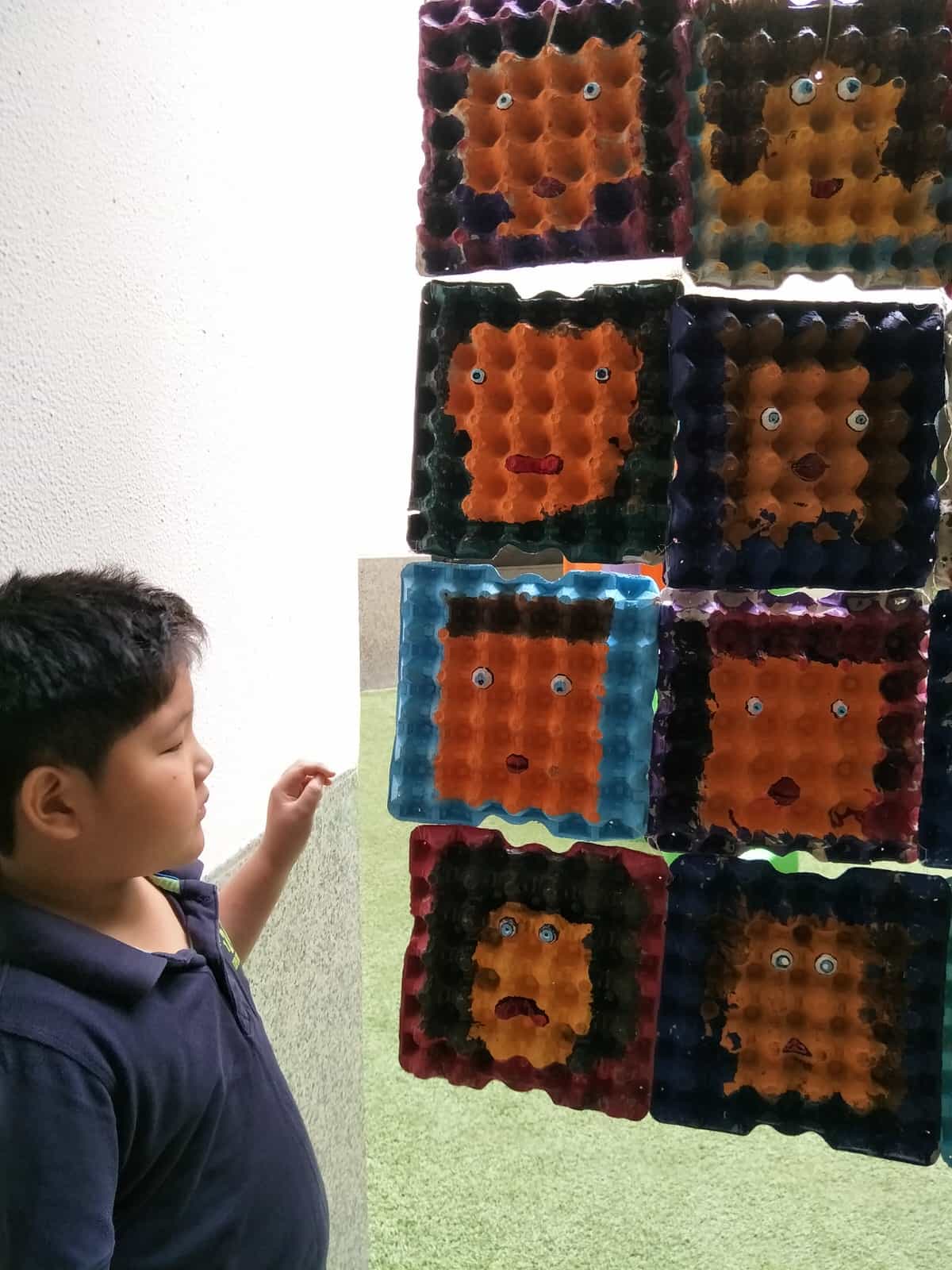 兒子最喜歡的是美術課,課堂上使用了水果蔬菜或是回收材料等各式素材,也剛好發揮了兒子的畫圖創作專長,指導老師還因為他太有創意,特別帶他展示作品給校長欣賞,他回家後開心的分享這件事情的神情,讓媽媽覺得一切都值得了!