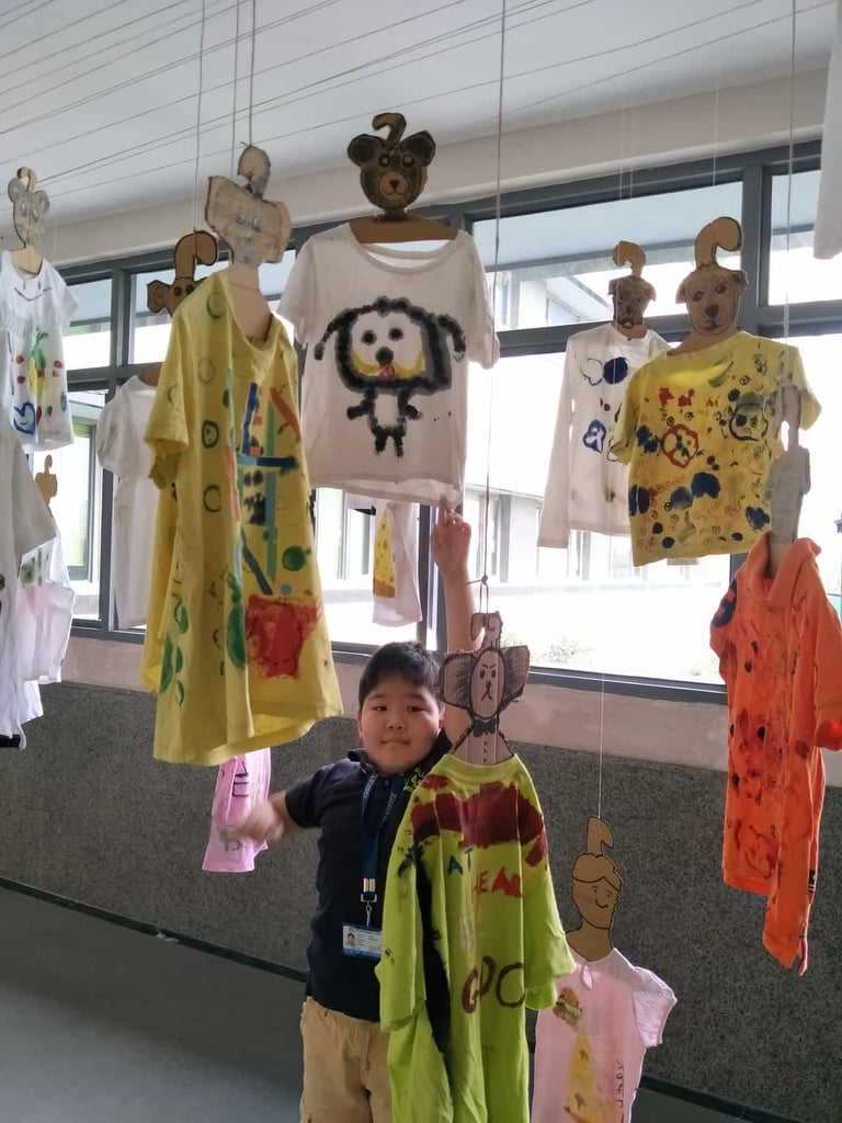 兒子來到印度才半年的時間,我見證了他從認為自己是全世界最笨的孩子,到現在每天都很開心的學習吵著要去上學。也許因為他是個長得白淨的小孩,在印度社區裡特別顯眼,大家都想跟他做朋友,老師總喜歡抱抱他、讓他介紹台灣這個國家給其他同學。對於他的美術作品更是大力表揚與鼓勵,目前游泳教練計畫讓他入選學校的游泳隊,並於游泳課時,讓他當小小教練。
