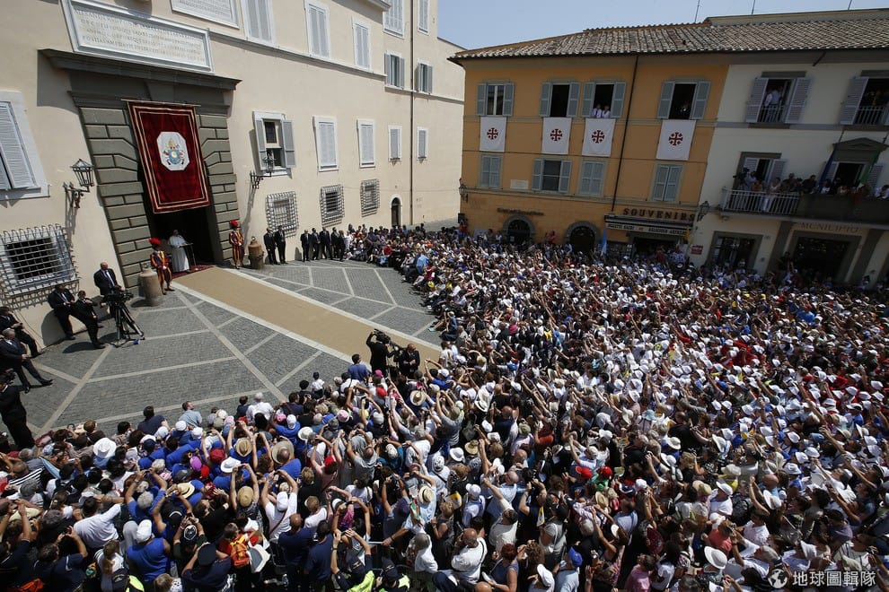 上圖為教宗方濟各在夏日別墅岡多菲堡接見信徒。