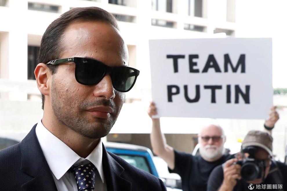 7號這天,在美國總統川普(Donald Trump)競選團隊擔任外交政策顧問的帕帕佐普洛斯(George Papadopoulos)出庭受審,他坦承先前在接受FBI調查時,沒有清楚交代競選團隊和俄國聯絡的時間點。一旁的民眾舉著「和普亭(Vladimir Putin)同一隊」字樣的牌子,抗議帕帕佐普洛斯的行為。
