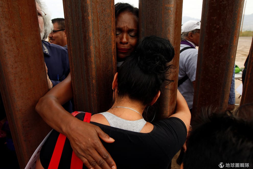 在和美國接壤的華瑞茲城(Ciudad Juarez),被圍牆分成兩邊的親友想辦法擁抱對方。