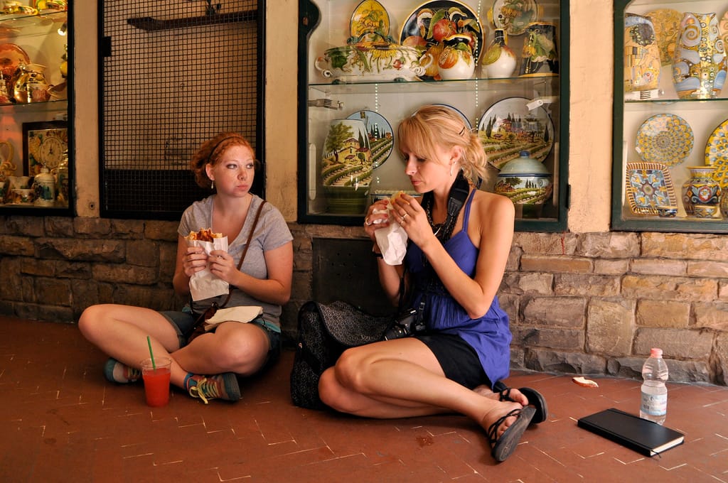 為了體驗當地美食和節省用餐的時間,不少造訪佛羅倫斯的遊客會買三明治在大街上填飽肚子。