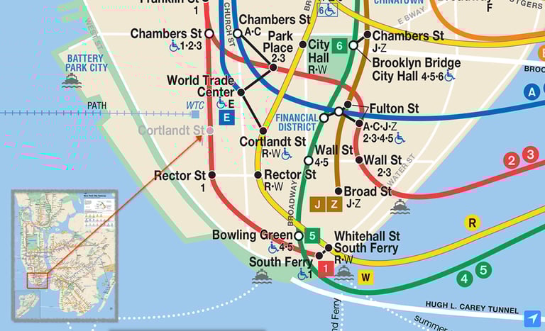 2001年9月11日在紐約下曼哈頓地區(lower Manhattan),當雙子星大樓因為恐怖攻擊倒塌時,位於地鐵 1號線的科特蘭街車站(Cortlandt Street)也受到波及,從那之後近 17個年頭,1號線的科特蘭街車站就一直處於暫停營運的狀況。