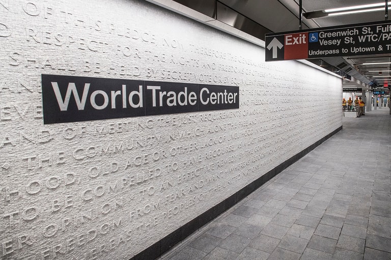 整座地鐵站斥資 1.8億美元(折台幣約 56億元)打造,其中包含了建設新的天花板、替代 365公尺長的鐵軌,也增加了不少新技術,包含能保持月台涼爽的新式空調系統、減少柱子以幫助疏散客流。除此之外,這座車站還有一座白色大理石牆面,上頭寫著美國獨立宣言,以及聯合國在 1948年發布的《世界人權宣言》。