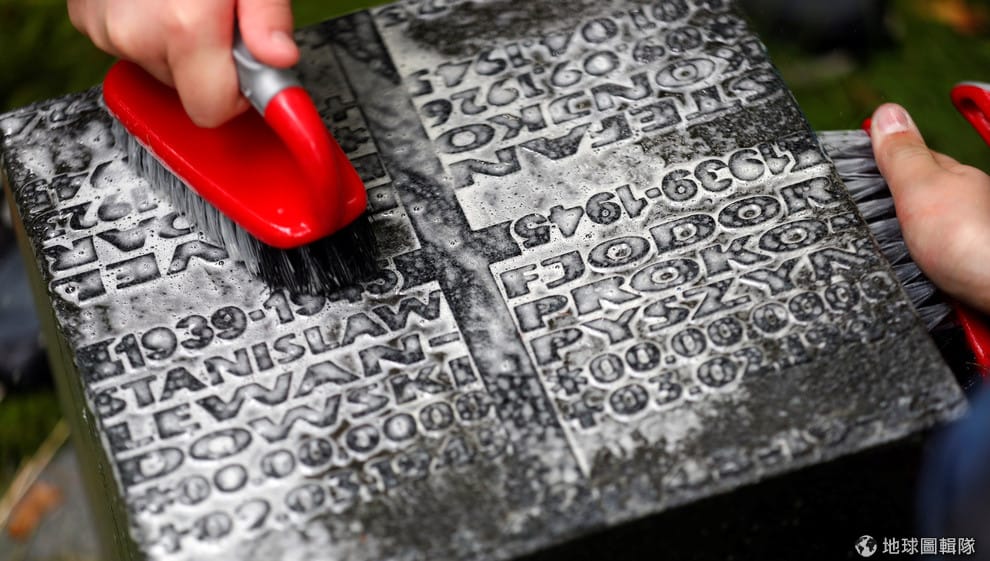 在柏林一座墓園中,民眾正刷洗納粹受害者的墓碑。