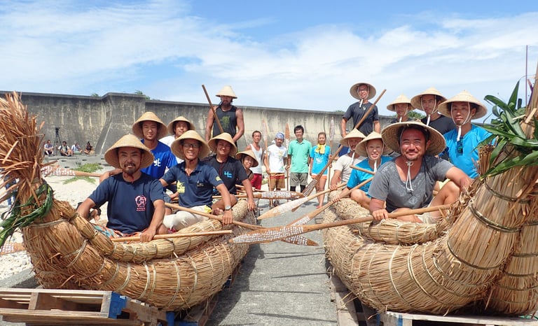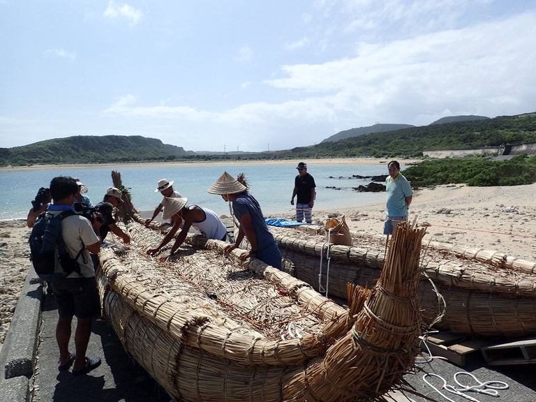 2016年,「三萬年前的航海計畫」先選用了與那國島特產的長苞香蒲(Typha domingensis)和須葉藤(Flagellariaceae)造了數艘「草船」,而船槳的部份則是參考繩文時代初期出土的遺跡仿造的木槳。
