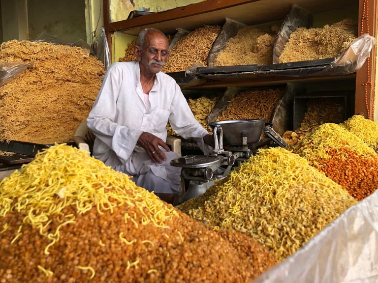 當然,這樣的街邊小店有很多人不敢嘗試,在印度的雜貨店或商場中,也有包裝好的 Nampkeen,建議可以買來吃看看唷!