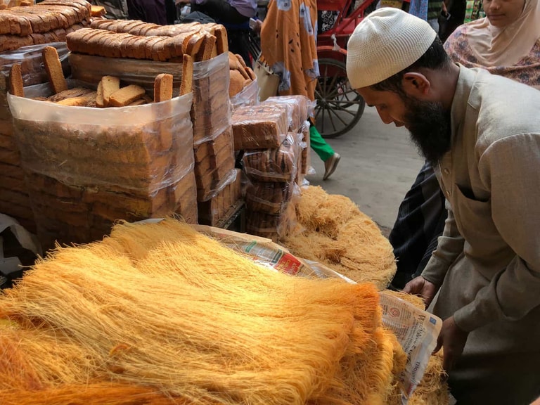 誒!離題惹!Rusk 佔據了照片右方,左方那一團團的圓形細麵才是特別要跟大家介紹的!看起來是不是很像台灣的麵線糊!感覺就是要丟蚵仔或是大腸進去煮啊!NO!人家這個可是吃甜的!這個小圓團細麵叫做 Feni,也稱作 Pheni 或是 Firni,細細的炸麵沒有添加任何的調味料,可以直接當零嘴吃,也可以丟進熱牛奶裡泡個十到十五分鐘,就是營養又好吃的甜點囉!