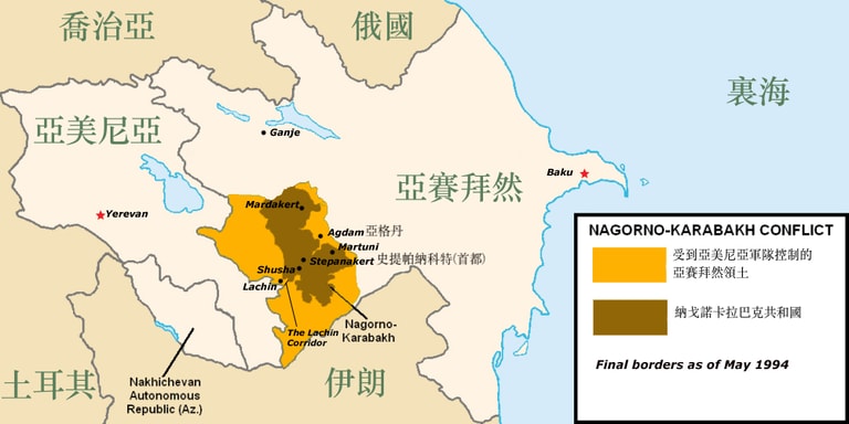 兩亞都曾是前蘇聯的加盟共和國,彼時蘇聯將亞美尼亞人口占94%的納卡地區劃入亞賽拜然,埋下矛盾種子。1988年蘇聯解體前夕,納卡多次提出重劃邊界未果,自行宣布脫離亞賽拜然、回歸亞美尼亞,蘇聯疲軟瀕崩,已無力調節,雙方勢力在納卡正式開戰。