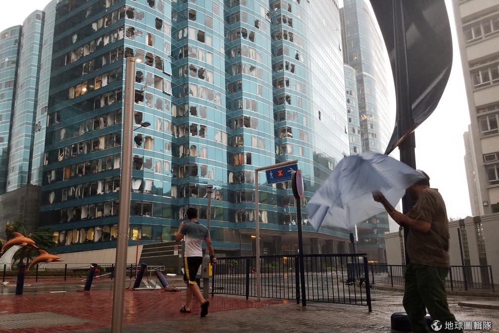 在香港被超級強颱「山竹」籠罩的上周日(16),可以看到被洪水淹沒的街道、3公尺高的海浪、施工到一半的建築部分被吹落等情景——所幸並沒有傳出死亡事故。