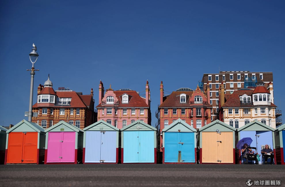 來到海濱市鎮布萊頓(Brighton),人們坐在折椅上享受著秋天的陽光。