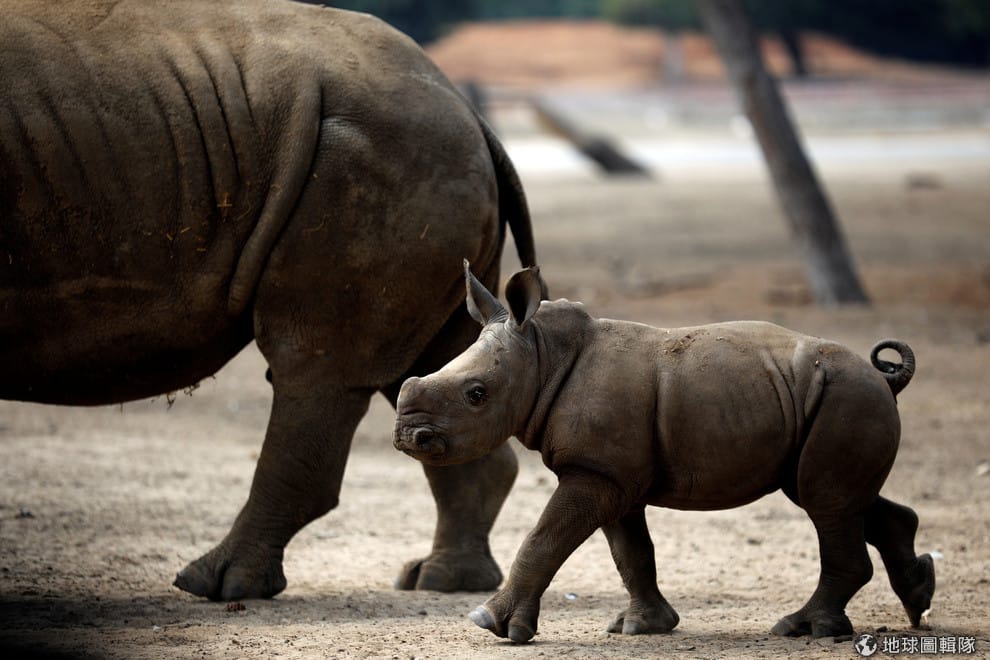 在拉馬幹野生動物園(Ramat Gan Safari Zoo),一隻在 8月14日出生的南非白犀牛緊緊跟在母親身旁。牠現在已經有 50公斤重。