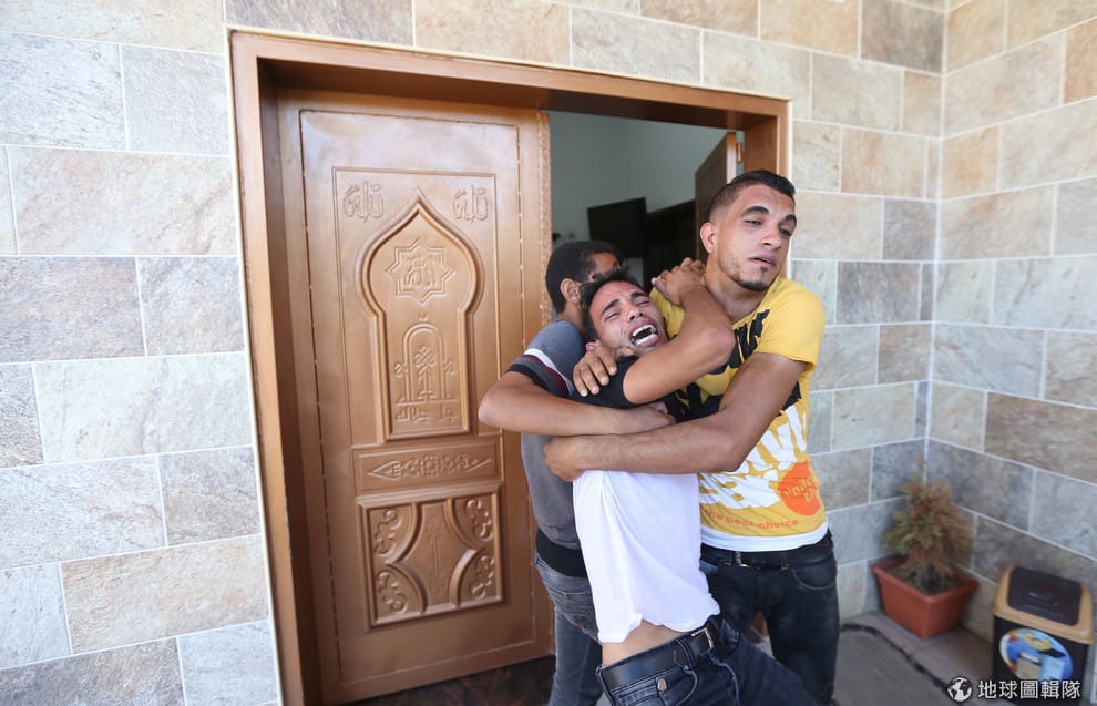 看到自己在以色列—加薩走廊邊境死去的親人,畫面中的人們難掩情緒哀痛。