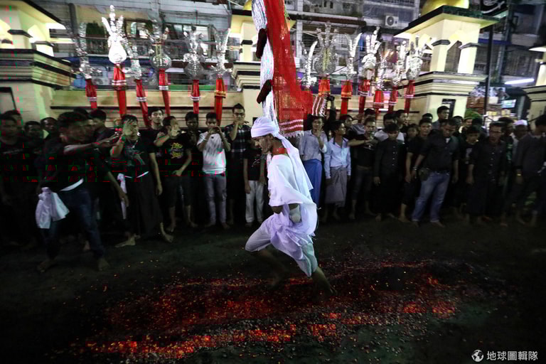 一名什葉派穆斯林赤腳走過熾熱的煤礦路,作為慶祝阿舒拉節(Ashura)的儀式,藉此紀念先知穆罕默德(Mohammad)的孫子阿里(Hussein ibn Ali)之死。