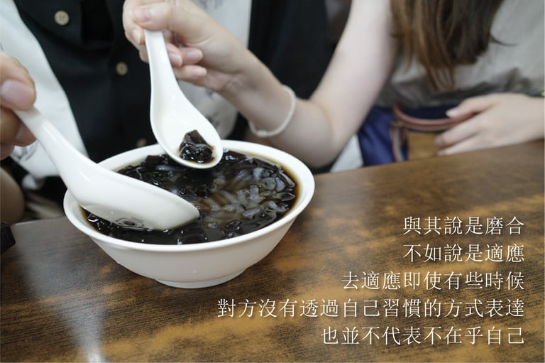 L:對,越是聊天,越明白我們兩人的出生背景,造就了我們之所以那麼不一樣的表達方式。與其說是磨合,不如說是適應。去適應即使有些時候,對方沒有透過自己習慣的方式表達,也並不代表不在乎自己。尤其D這幾年來也改變很多,像是他漸漸會自己開話題了,這對我而言是非常特別的。畢竟通常在一個小時交談中,八成都是我在開啟新的話題(笑)。