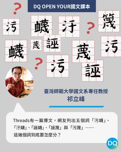 【DQ Open Your 國文課本】污衊、汙衊、誣衊、誣篾?ㄨ ㄇㄧㄝˋ這個詞,到底怎麼分? 古文 祁立峰 國文 more 許家銘 2025-10-16 2025-11-07 bookmark_border