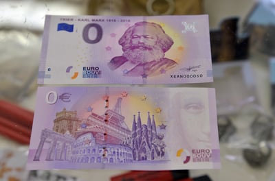 「無產階級的人站起來吧!」 一起用3歐買這張0元的馬克思紀念鈔